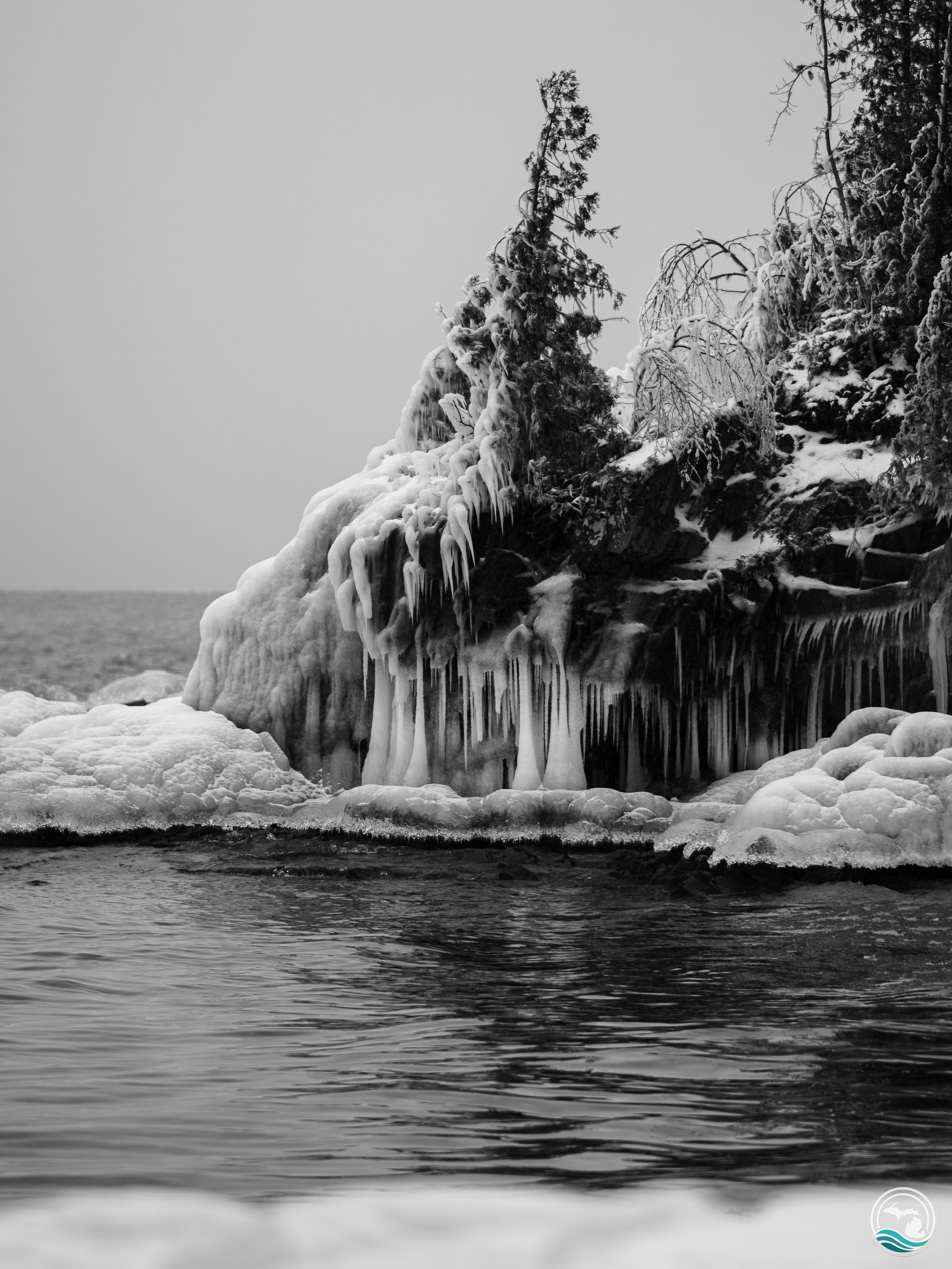 This was taken in early 2026, back when somehow things felt a little bit less bleak than they do today. Of course, the weather on that day had no way to know this but it did make it very easy to edit this photo of an icy outcrop at McCarty’s Cove in Marquette into a moody black and white image. Thanks, January 3rd Weather!